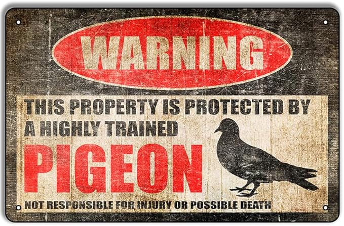 Panneau humoristique en métal avec inscription « Warning This Property Is Protected by Highly Trained Pigeon » - 20,3 x 30,5 cm - Pour pigeon Coop, No Trespassing, décoration de cour, cadeau pour