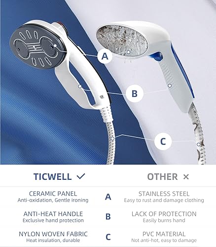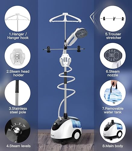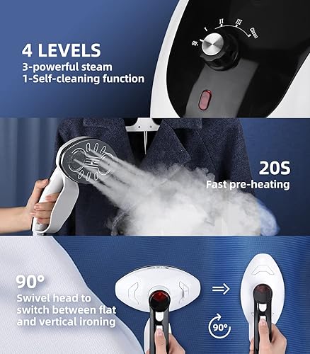 TICWELL 1600 watts Défroisseurs vapeur verticaux, 20s de chauffage rapide, 3 réglages de volume de vapeur, 90 minutes d'utilisation continue, 2.4L Noir
