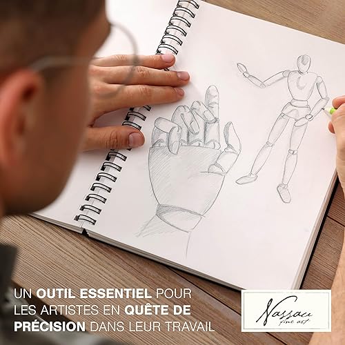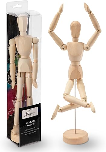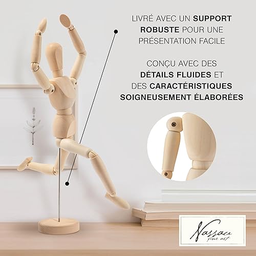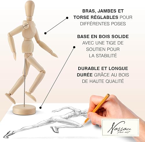 Mannequin de Bois Articulé Nassau Fine Art | Pantin articulé de 30 cm | Personnage en Bois pour le Dessin | Mannequin Anatomique | Fourniture d’Artiste pour le Kit d’Art | Marionnette pour Dessin