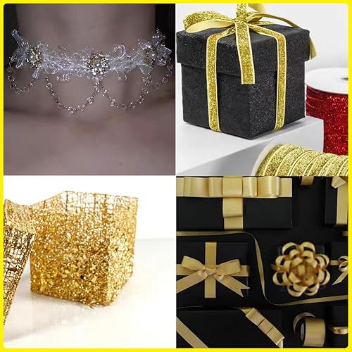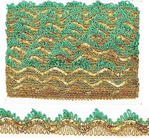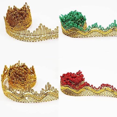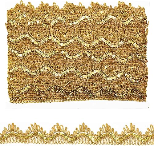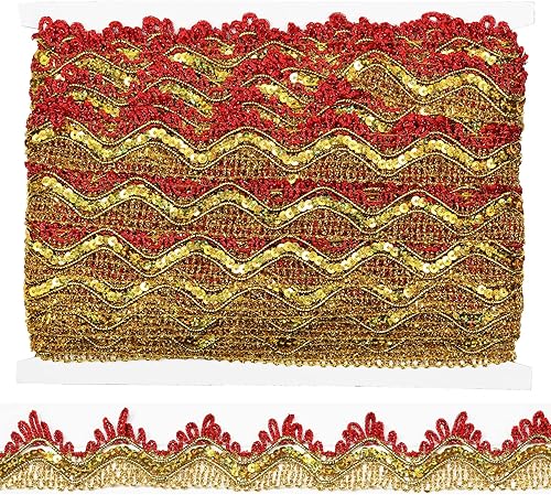 Tibaoffy Ruban de dentelle à paillettes rouges et dorées pour loisirs créatifs et couture - Longueur : 13 m - Largeur : 35 mm
