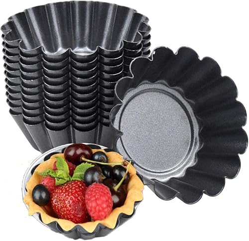14pcs Moules à Tarte Aux œufs, Antiadhésifs Moules à Tartelettes, Réutilisable Moule à Tarte à Cupcake, Mini Moules à Tartelettes en Acier au Carbone pour Pudding,Cuisson au Four,Muffins (7.5 X 2.3CM)