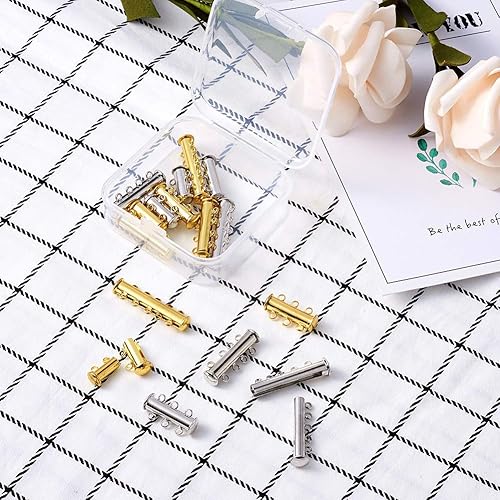 Pandahall 16 ensembles en laiton doré et platine multi-brins fermoirs de verrouillage à glissière magnétique collier Bracelet fabrication de bijoux fermoirs de Tube