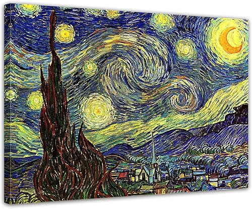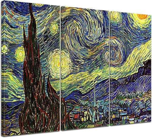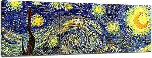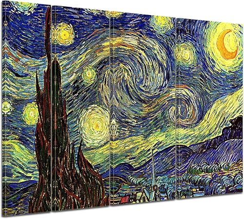 Art Print - vieux maîtres - Vincent van Gogh - Nuit étoilée - Panorama 180x120 cm vierteilig - Images sur toile - toile déco imprimée - tableau toile - photo sur toile