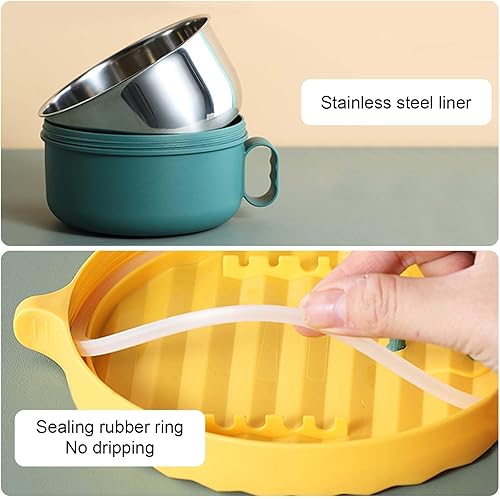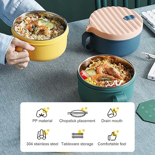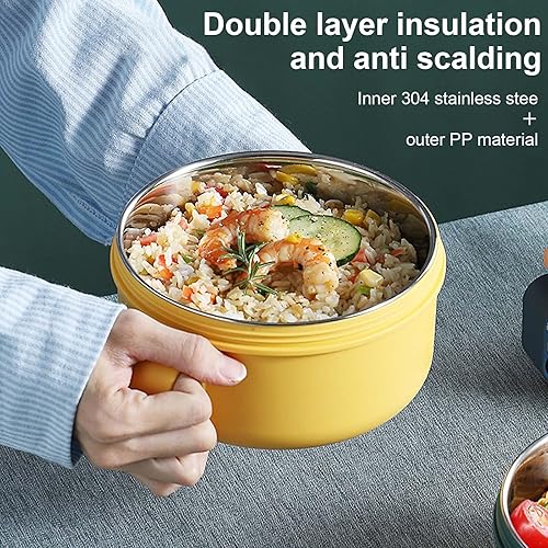 Disnace Bol à Soupe avec Couvercle et Poignée, 1200ml Bol Ramen Japonais et Doublure en Acier Inoxydable de Qualité Alimentaire, Bols à Nouilles Instantanées allant au lave-vaisselle (Vert Jaune)