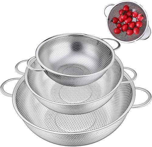 Passoire à pâtes en acier inoxydable, passoire de cuisine avec poignées, panier passoire dessus, pour égoutter les pâtes, légumes et fruits, riz, passe au lave-vaisselle, 1 pièce, Ø 22 cm