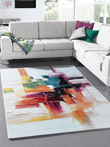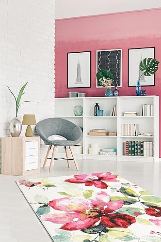 the carpet Monde Tapis de Salon Moderne à Poils Courts, Doux, accrocheur, Fleurs, Multicolore, crème, Rose, 200 x 290 cm