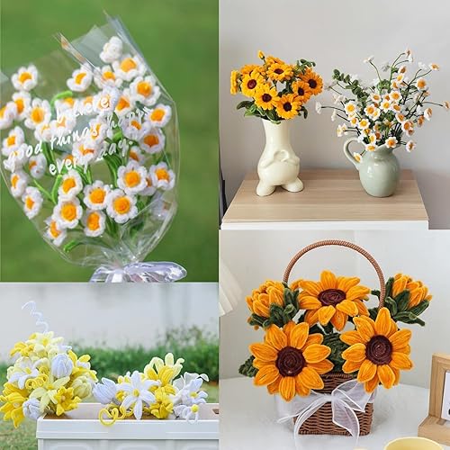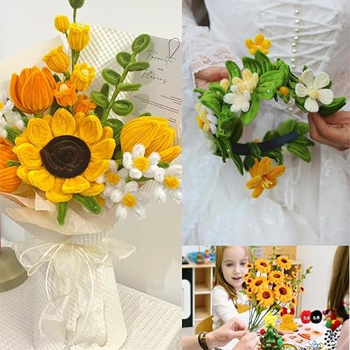 FINEVERNEK 250 Pièces Fil Chenille Bouquet de Tournesols, Cure Pipe Chenille 5 Couleurs, avec Floratape et Tige Fleur Artificielle, Adapté aux Fournitures de Bouquet de Fleurs et de Décoration DIY