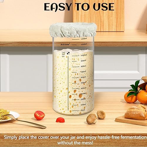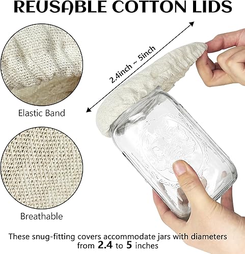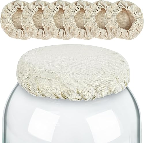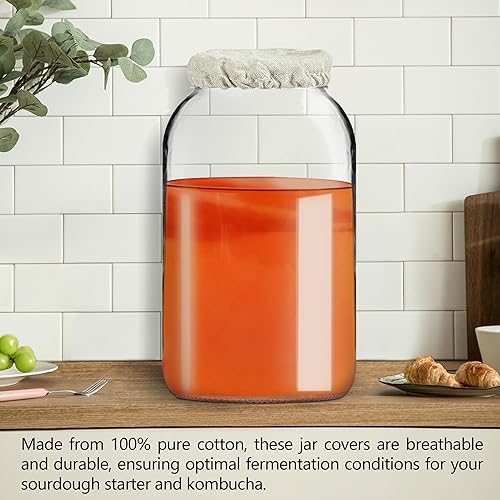 Artcome Lot de 6 couvercles réutilisables pour bocaux à levain – Couvercles en coton pour démarreur de levain, kombucha et bocaux de fermentation, bouchons 100 % coton bio non blanchi (convient aux