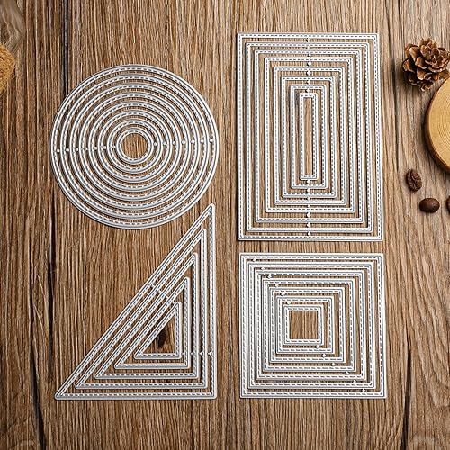 4 pièces Matrices de Découpe pochoir de perforation Géométrique Set de formes Carré Rectangulaire Cercle Triangle Cadre Carré de gaufrage Cutting Dies pour le scrapbooking Album Cartes Bricolage