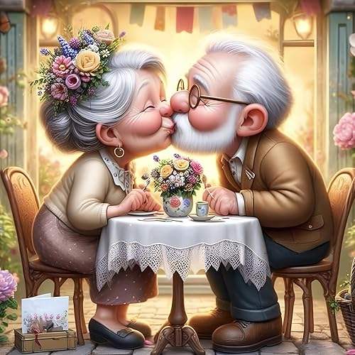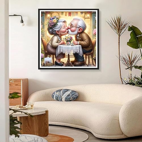 DPHERO 5D Couple Diamond Painting Kits, DIY Amoureux Art du Diamant Painting Kit Complet, Vieil Homme Broderie Kits de Peinture sur Diamant Point de Croix Painting pour Adultes Débutants 30x30 cm