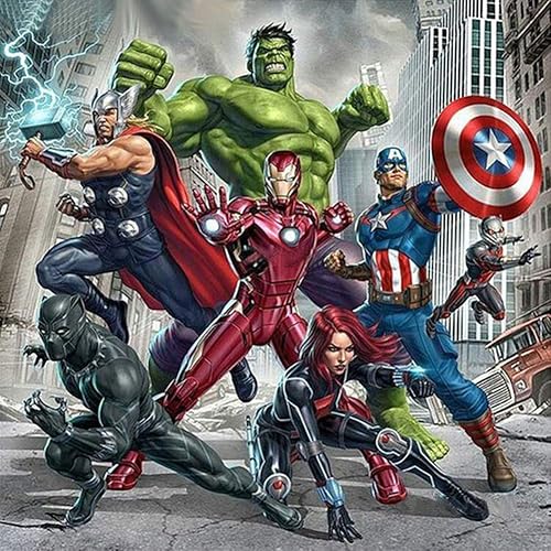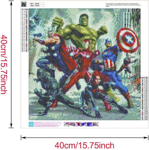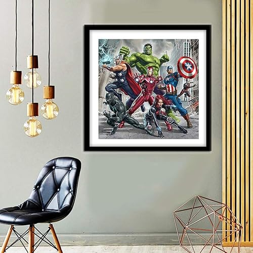 Kit de broderie diamant 5D à faire soi-même pour adultes - Pour décoration murale - 40,6 x 40,6 cm - Hulk et Captain America et Iron Man (les Avengers)