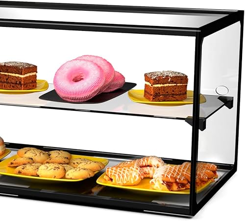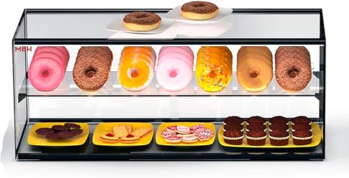 MBH - Vitrine à poser professionnelle neutre 92 cm 2 étagère pour pâtisseries et viennoiseries. Présentoir vitrée sur comptoir sans LED restauration.