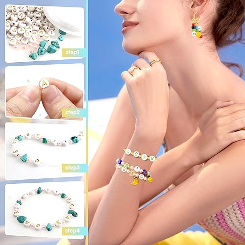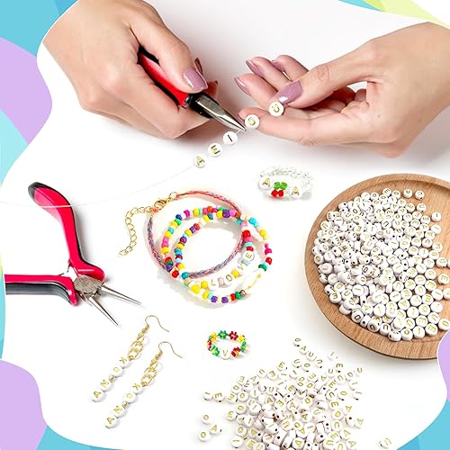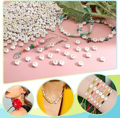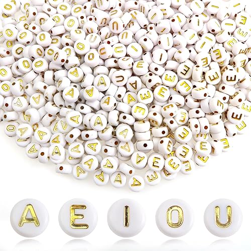 TOAOB 500pcs Voyelle Lettre Perles 4x7mm Rond Blanc Lettre Perles avec Alphabet Noirs A E I O U Ronde Acrylique Espaceur Perles pour Bricolage Fabrication de Bracelets Colliers Bijoux