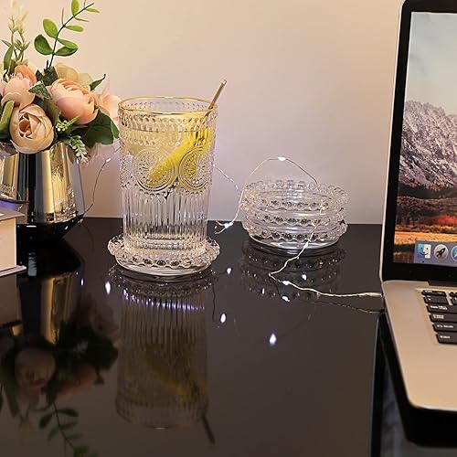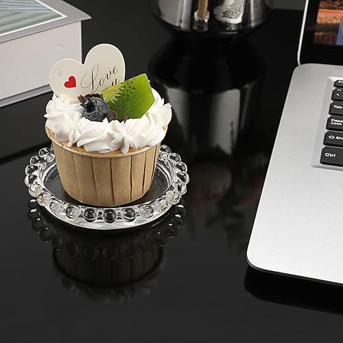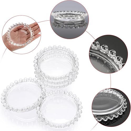 SUMTree Lot de 5 assiettes en verre transparent avec bord de perles,Pour bougie pilier,Décoration d'intérieur pour fête de mariage, dîner, événement, décoration d'intérieur, 3.5 cm de diamètre