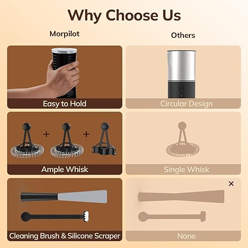 Morpilot Mousseur à Lait Électrique 4 en 1 à Mousse Chaude et Froide et Chauffe-lait, Emulsionneur Automatique 400W 240ml pour Cappuccino Macchiato Latte