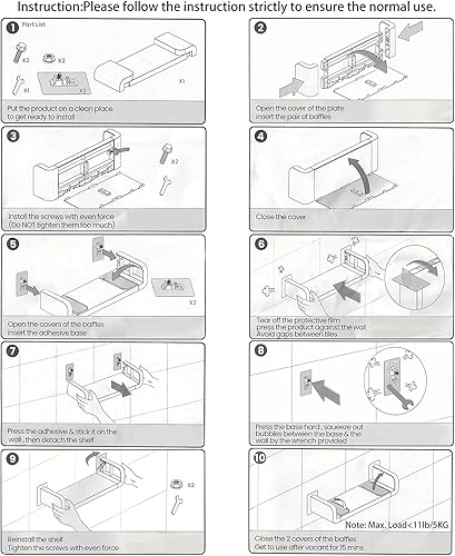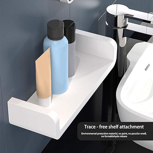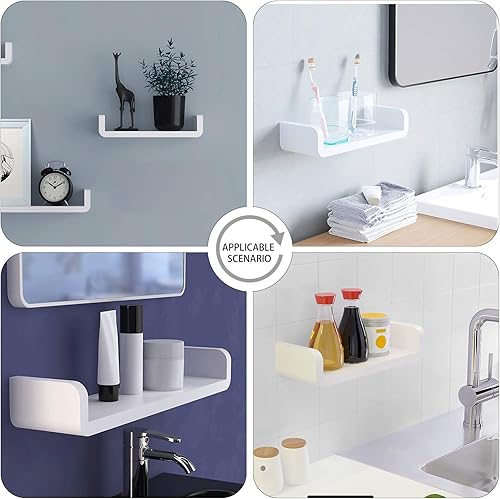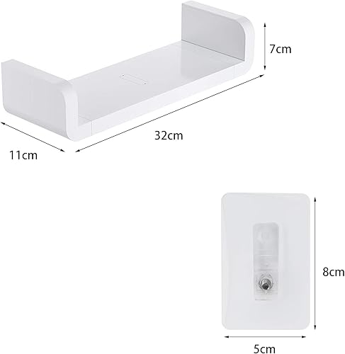 XunHe Plastique Wall Mount Étagères de Salle de Bain, Support de Rangement Mural Auto Adhésif sans Perçage, Étanche Ventouse Étagères Murales Flottante en Forme de U Fournitures de Douche (Moyen)