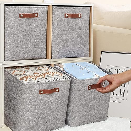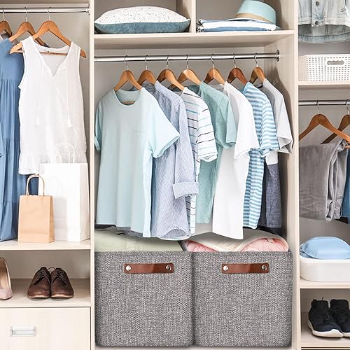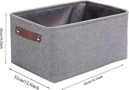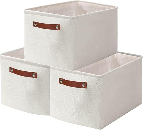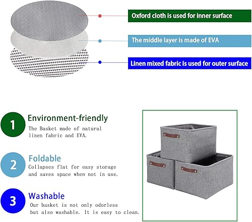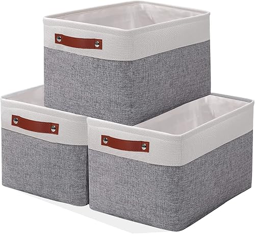 OUTBROS Lot de 3 Panier de Rangement en Tissu, 30 x 30 x 30 cm Boîte Pliable avec Poignées, pour Vêtements, Étagères, Armoires, Blanc/Gris