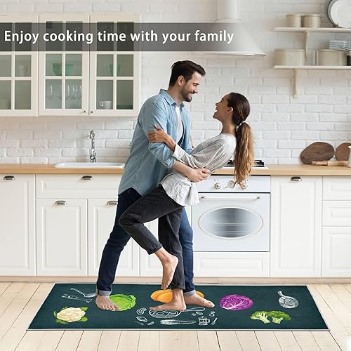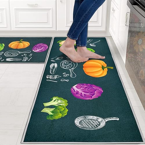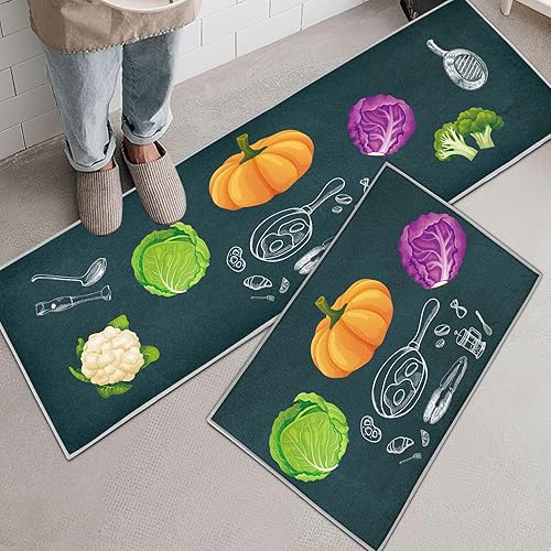 HZVRTN Lot de 2 tapis de cuisine lavables et antidérapants, confortables et imperméables pour la maison, la cuisine et la buanderie (fruits, 43 x 75 + 43 x 150 cm)
