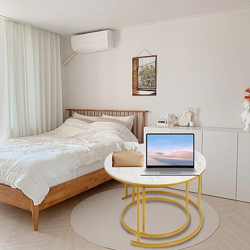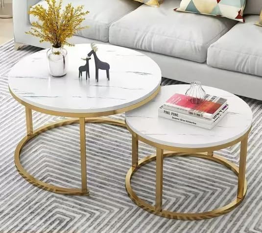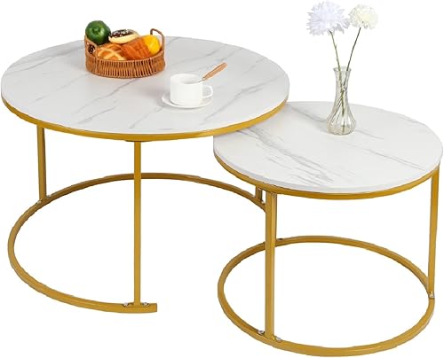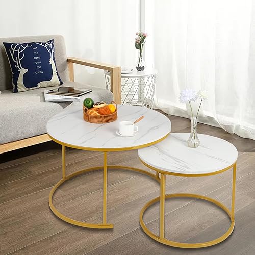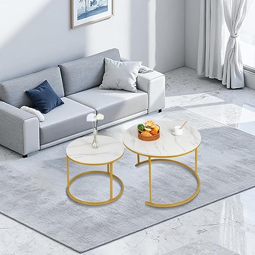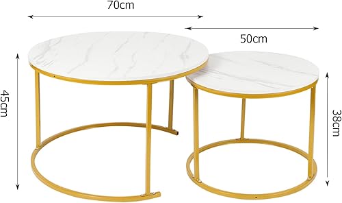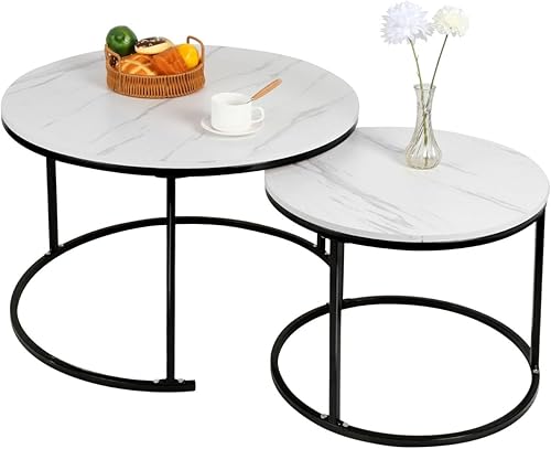 OHMG Lot de 2 Tables Basses gigognes,Table Basse Ronde,Empilable,Design Industriel,Table Basse de Salon,Pieds en métal,Tables de d'appoint,70/50CM Effet marbre (Noir+blanc-70 * 70 * 45cm)