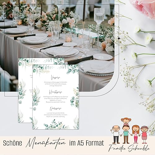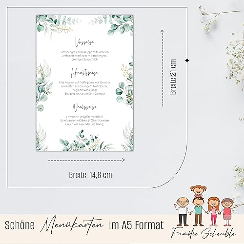 Eummelchen 13 Cartes de Menu enchanteresses au Format DIN A5 | Menus Personnalisables menus de Boissons pour Mariages, Anniversaires et Anniversaires | Décoration de Table élégante avec Menu Vierge