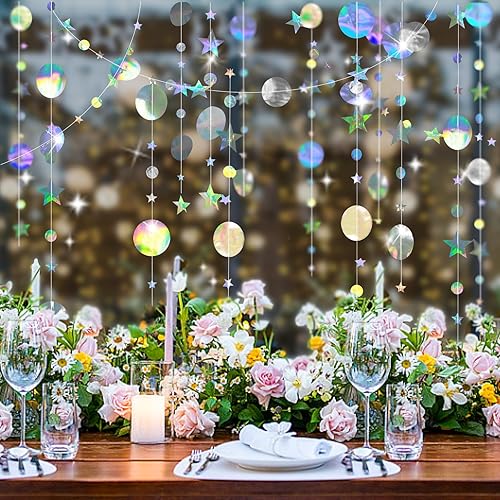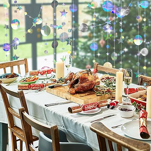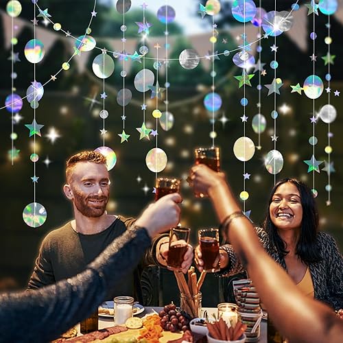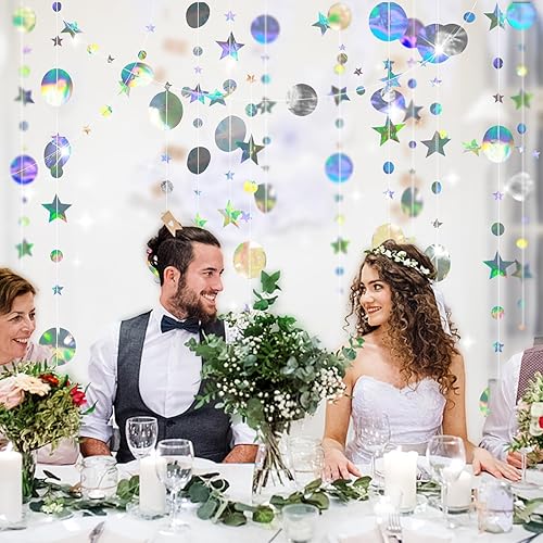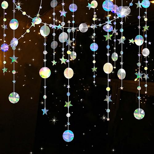 Zamety 65 Pieds Guirlande Papier, 5 Pièces Rond et Étoiles Papier Guirlande Anniversaire, Guirlande en Papier Paillettes Rond et Étoiles, Paillettes Guirlande Papier pour Mariage et Bapteme Decoration
