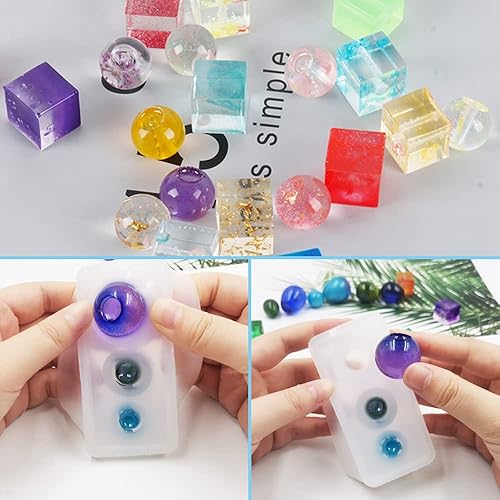 Lot de 6 moules en silicone pour perles en résine, boules d'œufs JiaLe et pendentifs carrés pour pierres précieuses, perles, cristaux et fabrication de bijoux