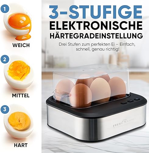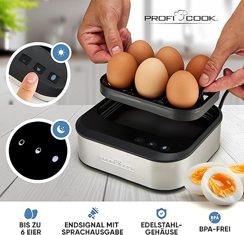 ProfiCook, Cuiseurs à oeufs avec signal vocal, Réglage électronique de la dureté à 3 niveaux, Plaque chauffante à revêtement antiadhésif, PC-EK1276