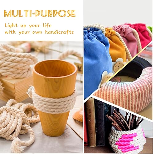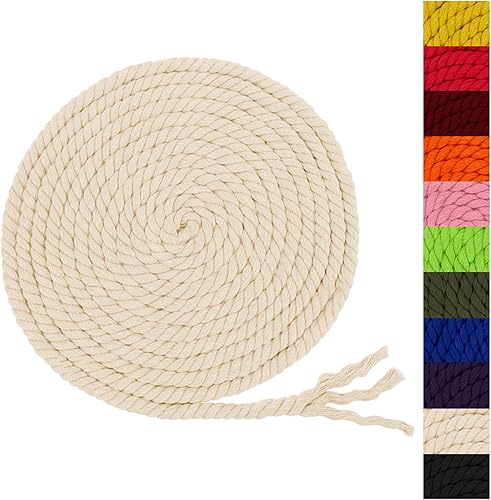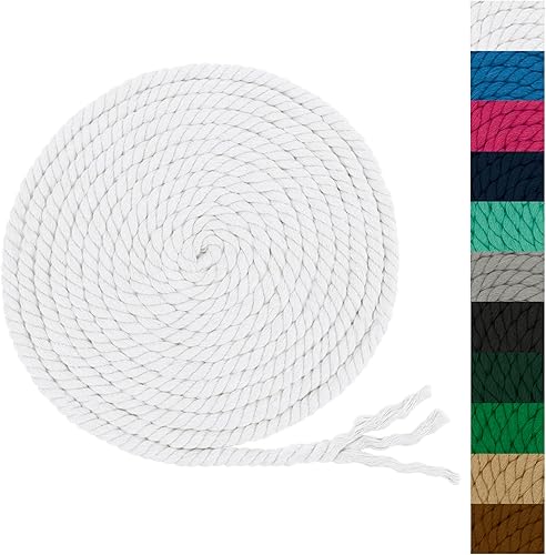 CAMAL Corde Coton Cordon 8mm Fil Macramé Grosse Decoration Corde Epaisse Cordelette Tressée pour Bricolage, Décoration Murale, Suspension de Plantes, Jardinage (8mm x 3m, Blanc)