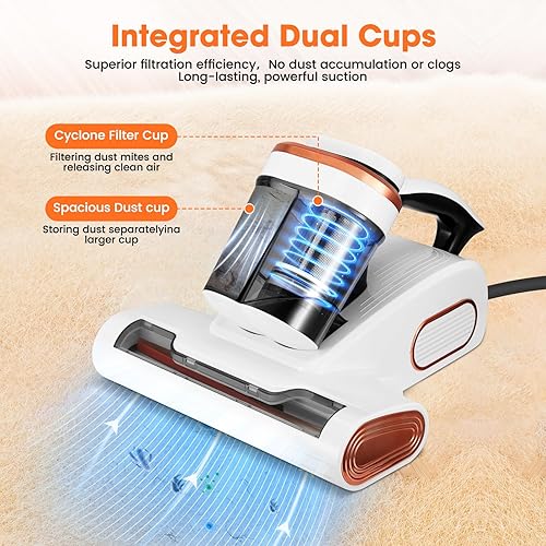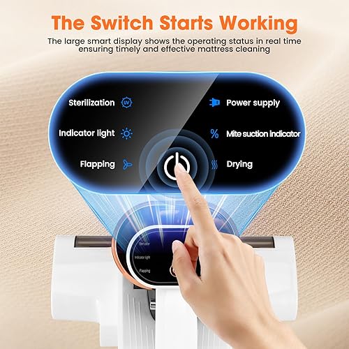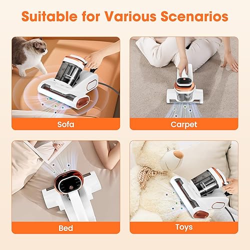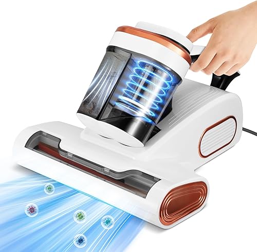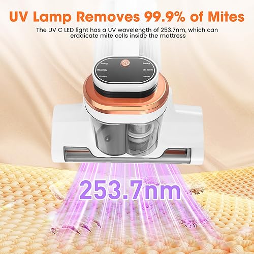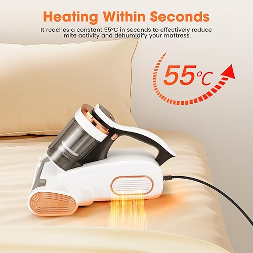 Aspirateur Matelas Anti Acariens, 13Kpa Aspiration Aspirateur Lit avec Lumière UV -C de 253,7 nm LED Aspirateur Matelas Ultrasons Chauffage Machine de Nettoyage Élimine 99,9% des Bactéries Allergènes