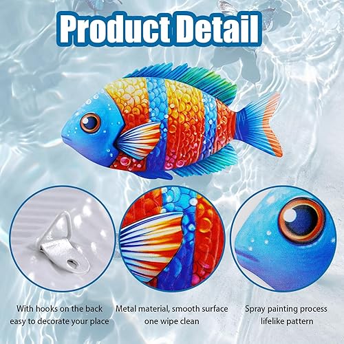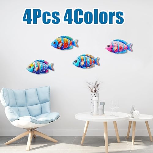 LIUCONGBD Lot de 4 décorations murales en métal en forme de poisson tropical, belle sculpture artistique de poisson tropical, décoration murale à suspendre sur la côte, pour l'intérieur ou