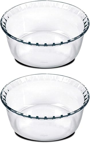 Lot de 2 moule soufflé rond, moule en verre fileté, plateau réfractaire, plat à four moule de cuisson, capacité 1.4 L - Diamètre 18 x Hauteur 8.2 cm -JUANIO