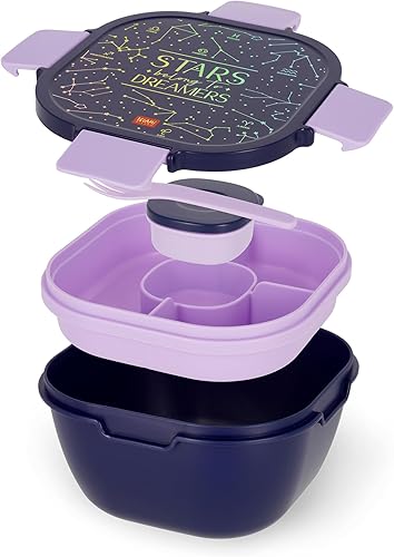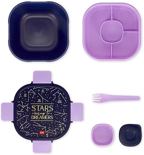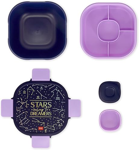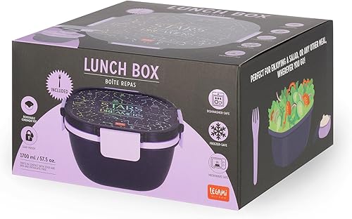 Legami - Boîte à déjeuner, boîte à lunch, 1 fourchette et 1 porte condiments inclus, porte repas hermétique, anti-fuite, capacité 1700 ml, thème étoiles, 19 x 10,7 x 19 cm