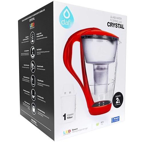 Dafi Crystal LED Carafe avec Filtre à Eau en Verre Classic 2L+ Cartouche Filtrante | Filtre Rouge Jug Inclus 1 Cartouche Filtrante & Capteur LED | Verseuse en Verre pour Réduire le Calcaire, le Chlore
