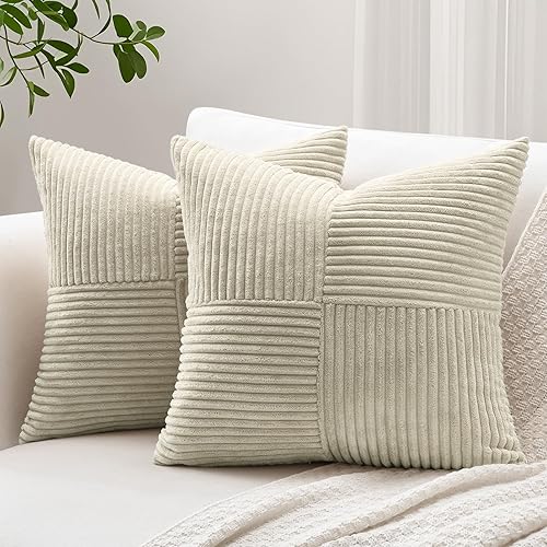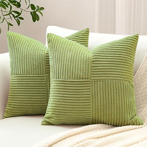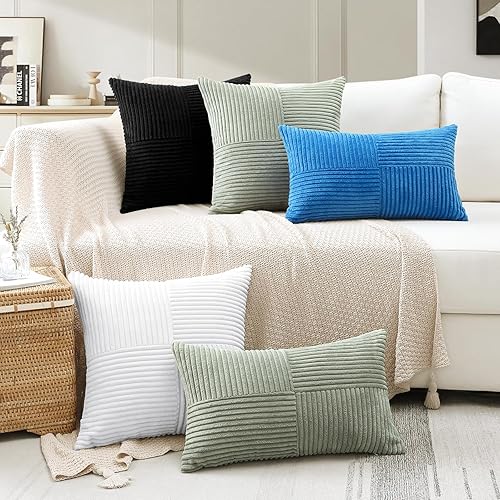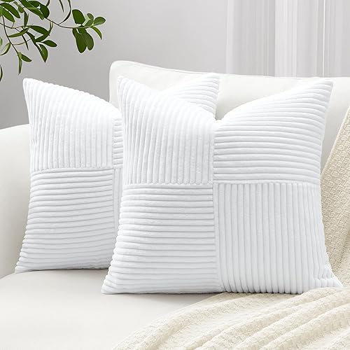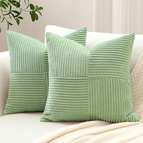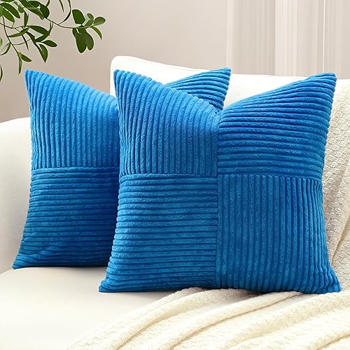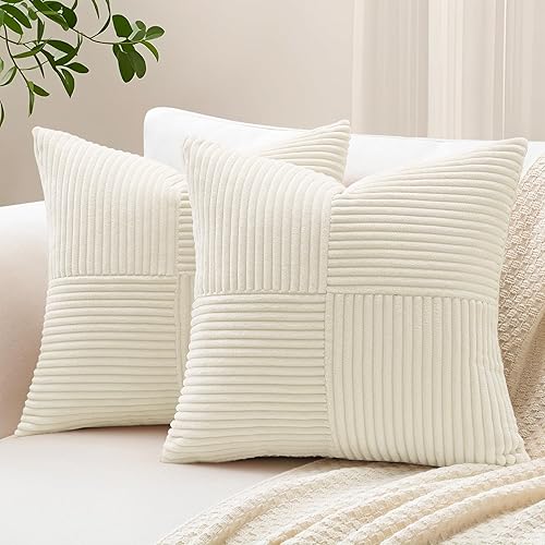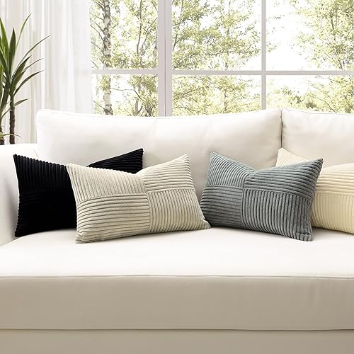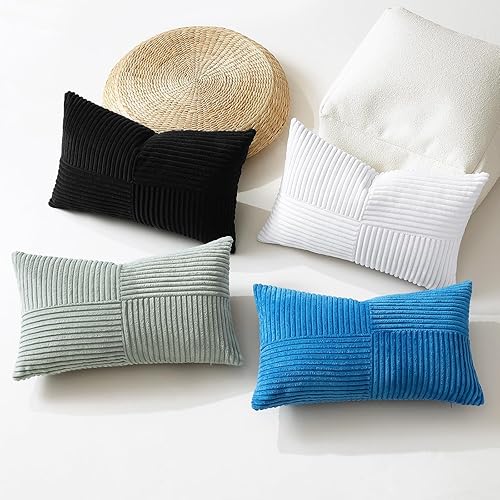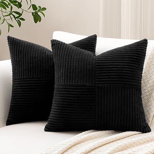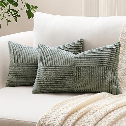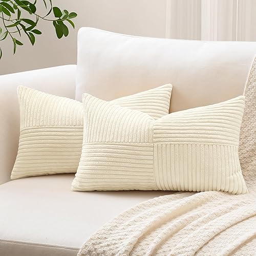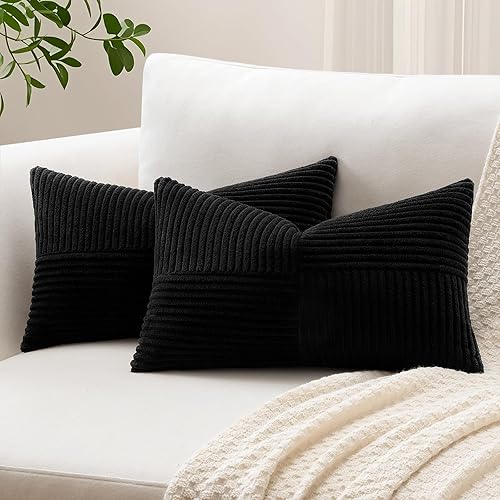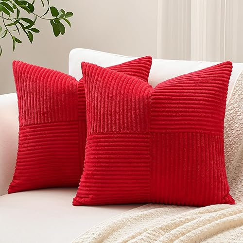Sungeek Lot de 2 housses de coussin décoratif, taies d'oreiller décoratives en velours côtelé doux, texturé avec motif de croix et patchwork uni, pour canapé, lit, terrasse, 40 x 60 cm, rouge foncé