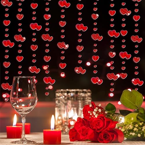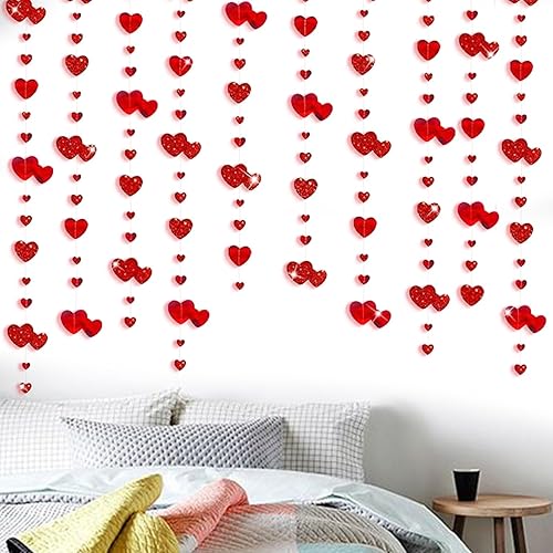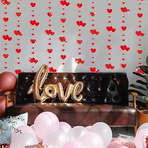 4 Pièces Guirlande Coeur Rouge Décorations de Saint-Valentin Suspensions Romantique Déco Décoration Pendentif Bannières pour Saint-Valentin Mariage Anniversaire Fête des Mères Noël, 4 * 4M
