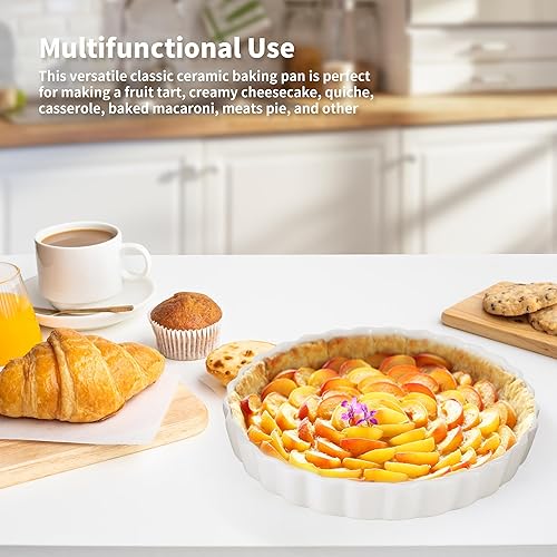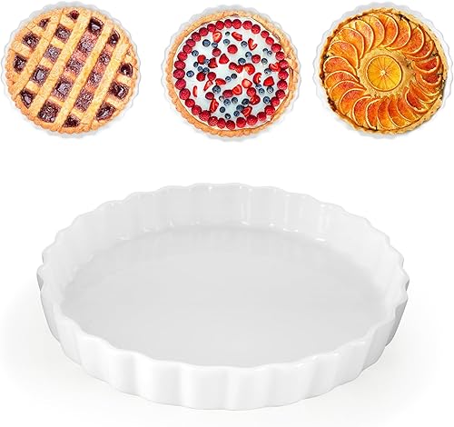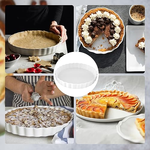 AZKEEGREY Plat à quiche en céramique pour le four, 22 cm, moule à tarte pour la cuisson de tarte rond anti-adhésif blanc,