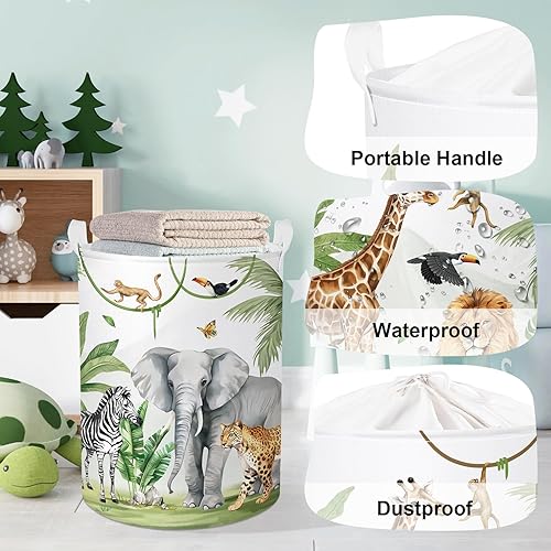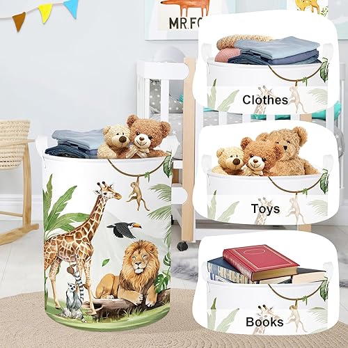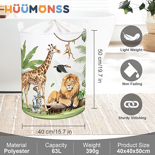 HUUMONSS Grand Paniers à Linge Animaux Safari pour Garçon Fille Girafe Lion Repliable Panier Rangement Jouets Vêtements pour Salle de Bain Chambre à Coucher, Singe, 63L