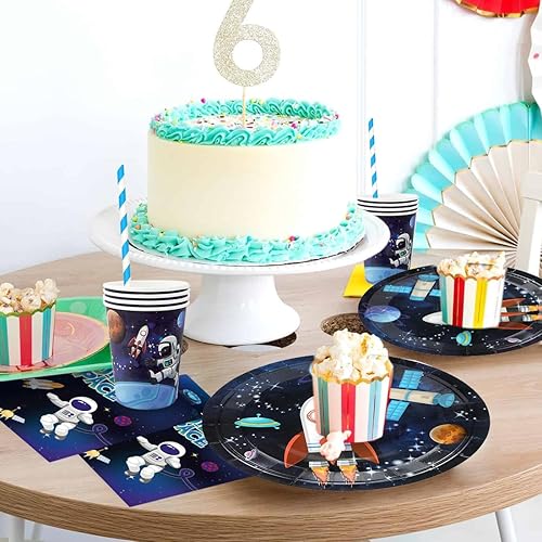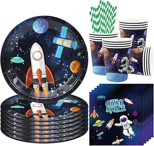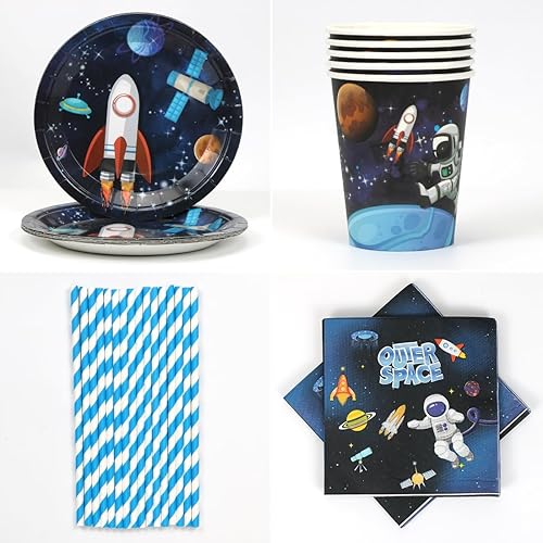 68 Pièce Assortiments Astronaute Vaisselle de Fete, Vaisselle Anniversaire Astronaute, Decoration Anniversaire Espace Assiette Tasse Serviette