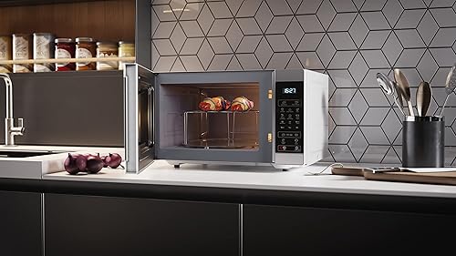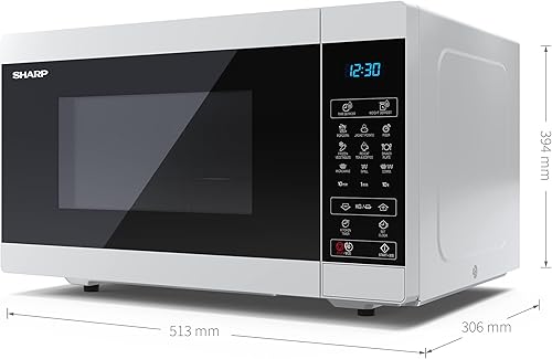 SHARP YC-MG81EW Micro-ondes avec Grill 28 litres, contrôle numérique, micro-ondes: 900 W, grill: 1100 W, 11 niveaux de puissance, plateau tournant, verrouillage enfant, fonction ECO, couleur blanche.