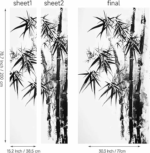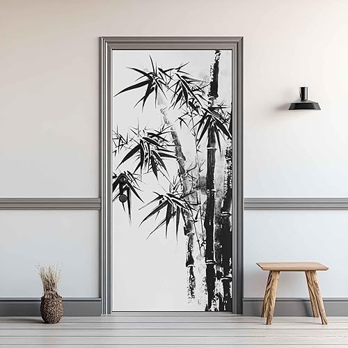 Sticker Porte Arbre Bambou, Papier Peint Plante Noir et Blanc Aquarelle, Autocollant Porte Auto-adhésif Amovibles, Pour Salon Chambre Décoration De La Maison 86x200cm