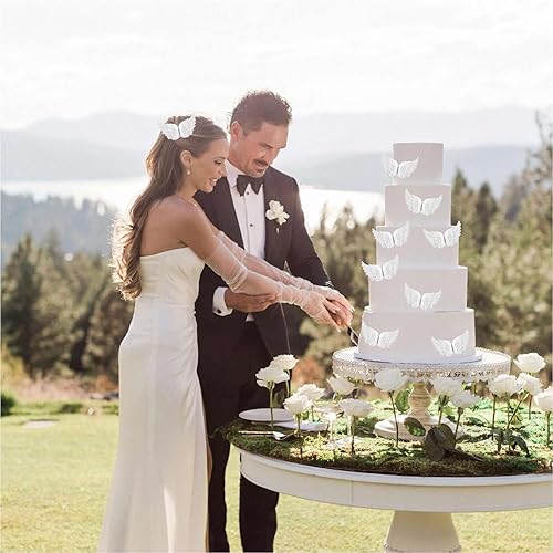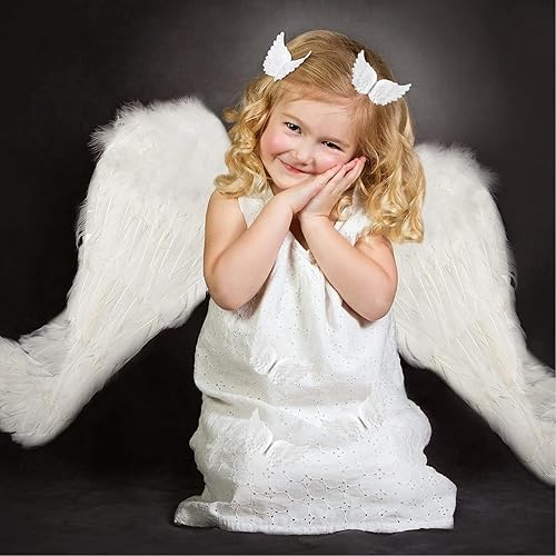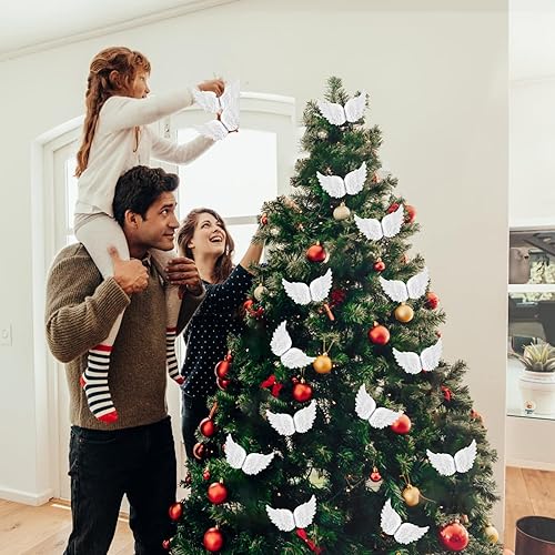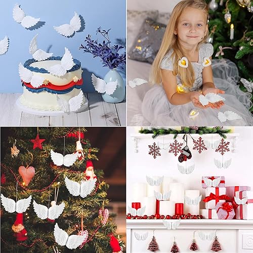 Lumeclat Ailes d'ange, 12 pièces, mini ailes en plumes blanches 3D en plastique, pour le bricolage, Noël, fêtes, artisanat, décoration, accessoires pour cheveux, mariages, petits ornements de sapin