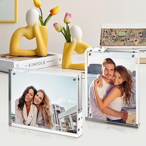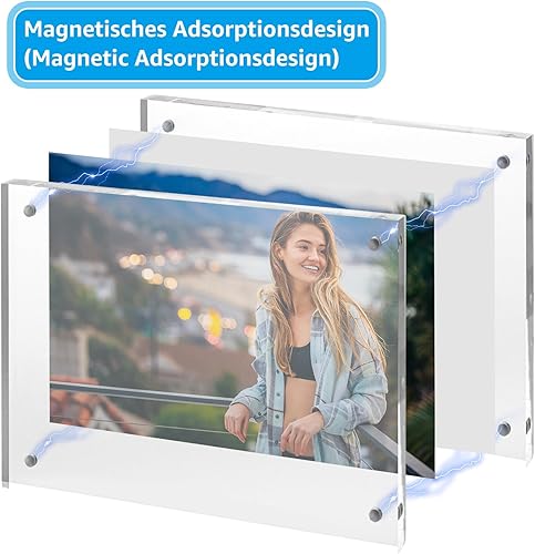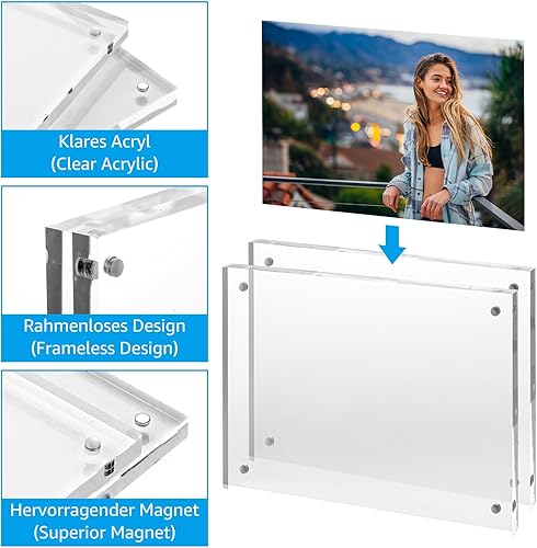 Oungy Lot de 3 cadres photo en acrylique - Double face - 13 x 18 cm - Magnétique - Transparent - Sans cadre - Magnétique - En format portrait ou paysage - Pour photos, collage