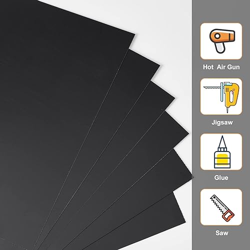 AHANDMAKER 6 Feuilles Feuille de Plastique Noir Feuille de Plastique ABS, Feuille de Plastique Durable avec Film de Protection, pour Projets de Modélisation DIY, Arts et Artisanat (19.9x30.1x0.05cm)