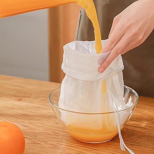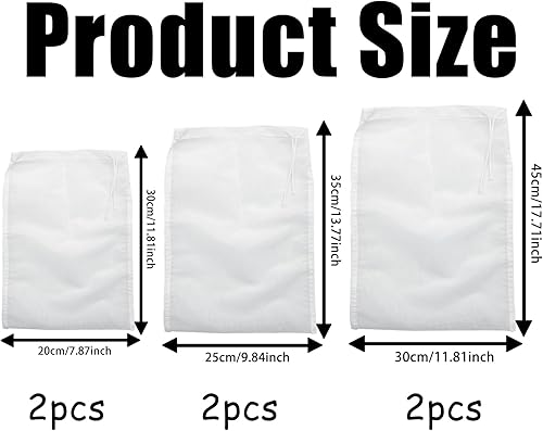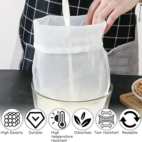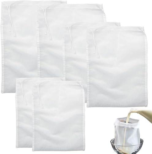 6pièces Sac a Lait Vegetal,Reutilisable Filtre Mousseline Alimentaire,Nylon avec Cordon de Serrage étamine Alimentaire,Sac à Mailles Fines Blanc,pour Lait de Soja,Jus de Fruit,Fromage