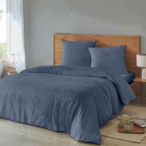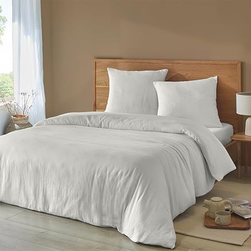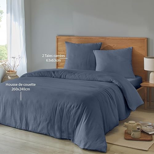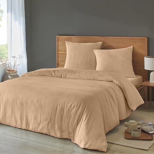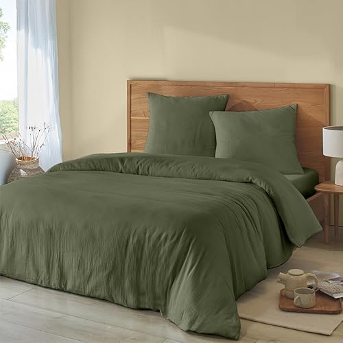 Duquennoy & Lepers 1867 Linge de lit Double Gaze de Coton Parure de Lit 2 Personnes 240x220 cm - Housse de Couette 240x220 cm et 2 Taies d’Oreiller 63x63 cm en Double Gaze de Coton Uni Kaki