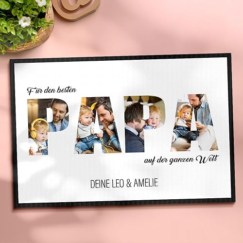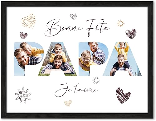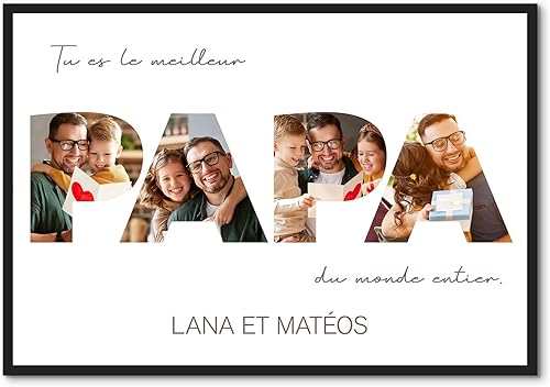VEELU Cadeau Fete des Peres Personnalisé - Cadre Photo en Bois avec Photo Texte - Idee Cadeau Papa Personnalisé - Cadeau Fete des Peres Anniversaire Original - Cadre Papa Personnalisable