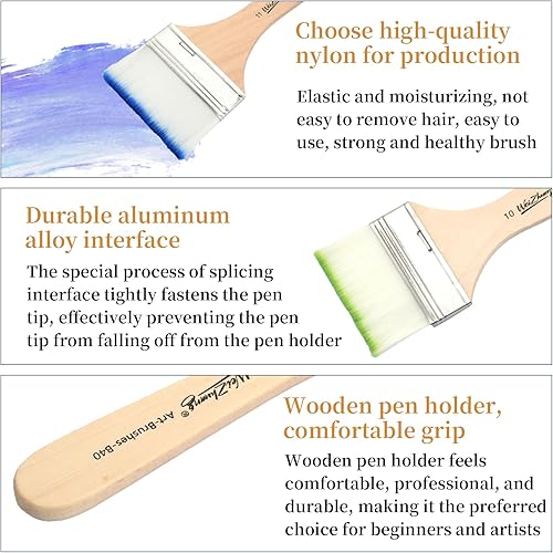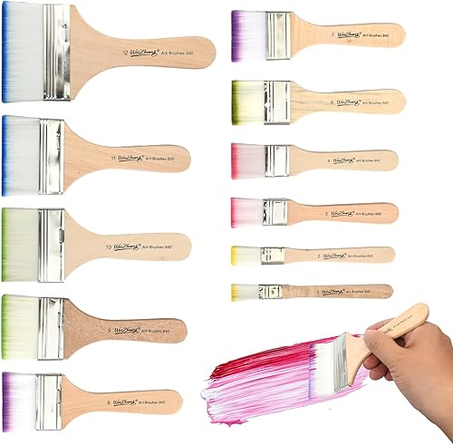 Lot de 12 Pinceaux Plats en Acrylique, Pinceaux en Nylon avec Manche en Bois, Parfaits pour la Peinture à l'huile, l'Aquarelle, Le Nettoyage du Clavier, Le Bricolage et Les Retouches de Peinture