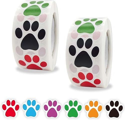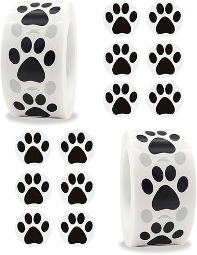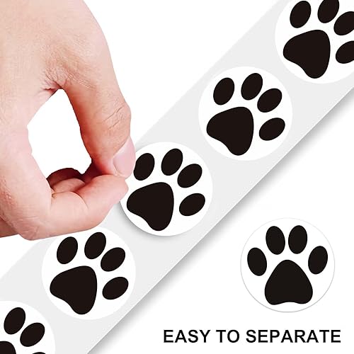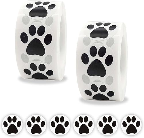 2 Rouleau/1000Pcs Coloré Empreinte De Patte Autocollants, Patte de Chien Stickers, Autocollants de Patte de Chien Colorés Empreinte pour Scrapbook Craft Labels Stickers Muraux Décoration (Noir)