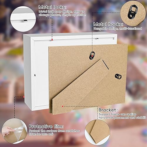 Ulikey Cadre Photo 3D à Remplir - Cadre Photo Profond, Cadre d'Objet en Bois avec Verre Acrylique Incassable, Cadre 3D pour Déco Murale, avec Lumineuse LED 2M Cadre Photo Argent Cadeau Mariage