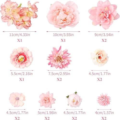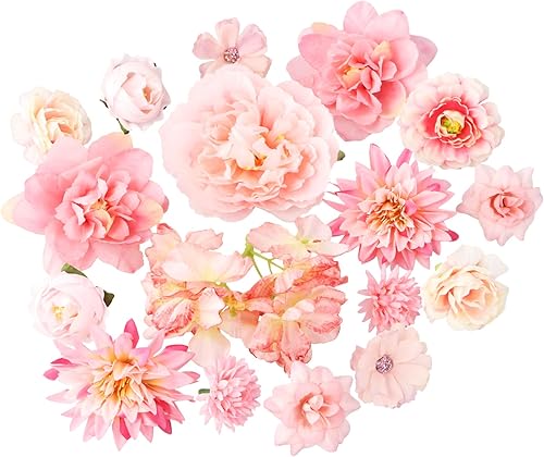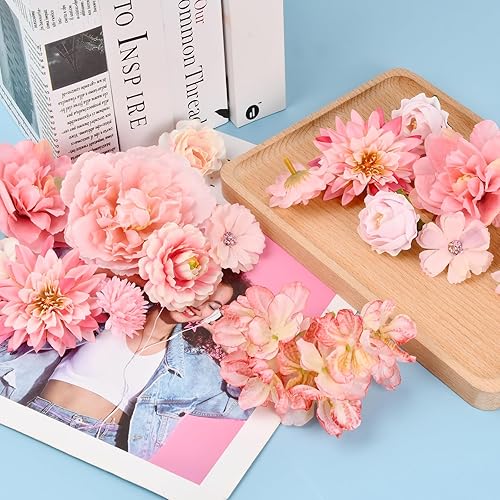 volumoon 17 Pcs Têtes de Fleurs Artificielle,Tête de Rose Fleur Artificielle 4-8cm Mini Fleurs Artificielles,Faux Tête de Fleurs pour DIY Couronne Bouquet, Mariage Fleur Decoration de Mariage